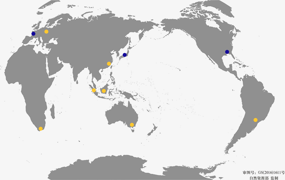 美国、比利时、巴西、俄罗斯、南非、新加坡、印尼、澳大利亚、中国、日本
